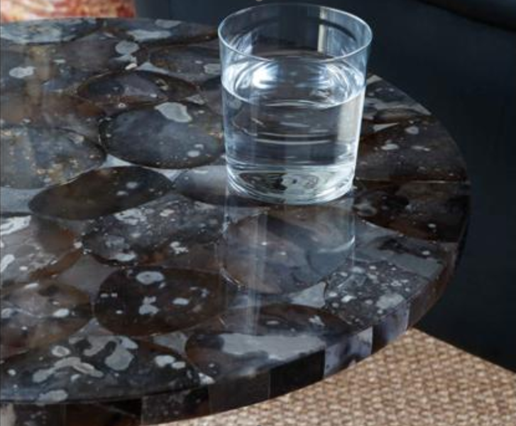 Customised Polished round table-top in flint